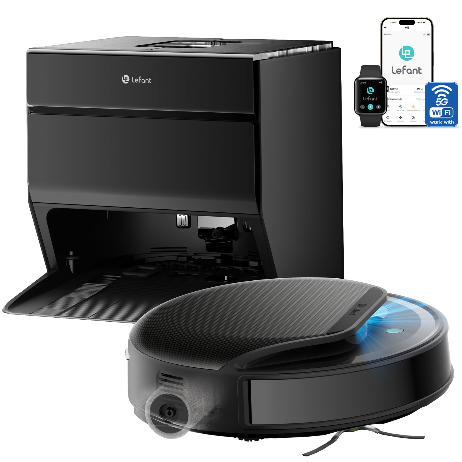 【Smart App Control & Dual-Band WiFi】Full control via Lefant App: schedule cleanings, target specific rooms, set no-clean zones. Auto-adjusts suction and mopping based on room needs. Supports 2.4G/5G dual-band WiFi for stable connectivity. Voice compatible with Alexa and Google Assistant.